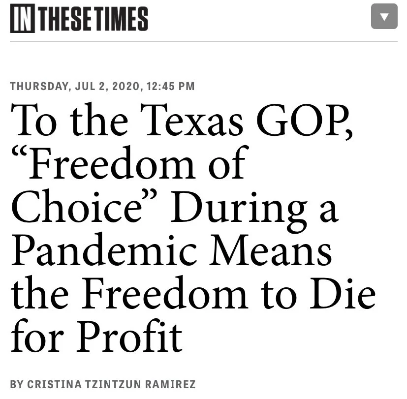 To the Texas GOP, “Freedom of Choice” During a Pandemic Means the Freedom to Die for Profit